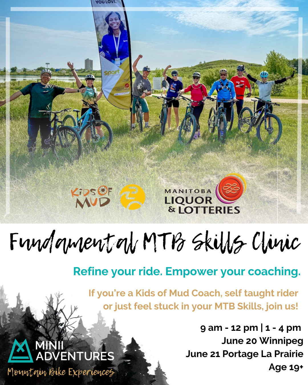 Intermediate-Advanced Mountain Bike Skills Clinics with Charlotte Batty Sunday June 21,2026 June 21/26: Prairie Flow Trails – Portage la Prairie200 Old Bridge Road South of the Highway #1 bypass Location: HERE Session 1: 9:00-1200 Session 2: 1:00-3:00 Min: 8 Participants Max: 10 Participants Cost $40.00 MCA Members $60.00 Non-Members Professional Coaching. Real Progression. One Incredible […] |