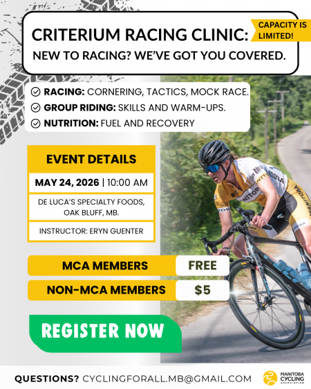Race Details Event Name: Tour de Riding Mountain: Criterium (Manitoba Provincial Criterium Championship) Event Type: Criterium Date: Sunday May 31, 2026 Time: 1 pm to 4 pm Location: 24 2 […]